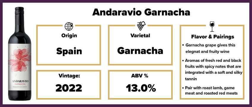 Andaravio Garnacha 2021 embodies the essence of Garnacha grapes, renowned for their elegant and fruity profile. Aromas of fresh red and black fruits intertwine with spicy notes, creating a harmonious bouquet. Soft and silky tannins contribute to a balanced, smooth, and pleasant palate, reflecting the wine's impeccable craftsmanship.