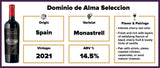 With a lingering finish that leaves a lasting impression, Dominio De Alma Seleccion is a perfect companion for hearty dishes such as grilled lamb chops or spicy chorizo sausage, accentuating its bold flavors and enhancing the dining experience with every sip.
