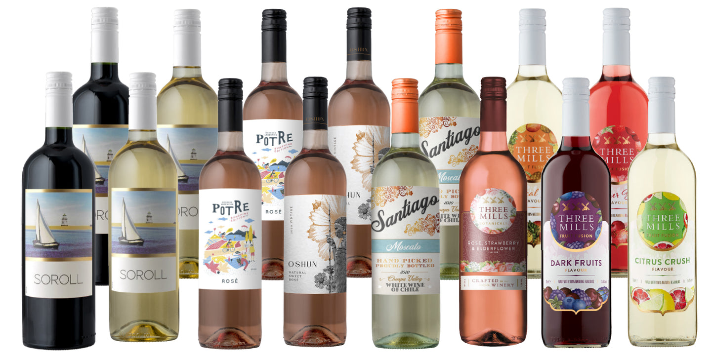 We brought together 15 delightful bottles, including some brand new extra big 1-liter sweet wines from Soroll and five delicious low-alcohol (5.5%) fruit fusion wines from Three Mills, and can deliver them all to your door for one insane price. A little bit fruity and a little bit sweet might be just what we all need right now!