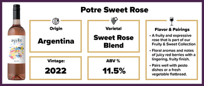 Potre Sweet Pink is named after the Potrerillos Dam and accompanying lake in Mendoza, Argentina. The winemakers describe the area as a stunning escape from the hustle of the city to a “beautiful beach surrounded by the snowcapped peaks of the Andes”- sounds like the perfect inspiration to us! This sweet Rosé would be the perfect match for this unbelievable locale- fruity and expressive with aromas of flowers and notes of juicy, mouthwatering red berries.