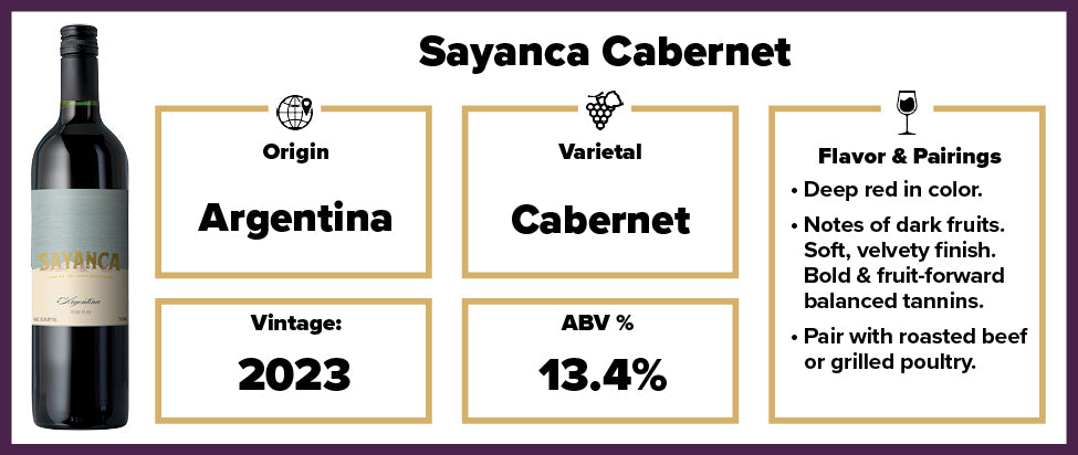 Ideal for pairing with hearty red meats, roasts, or savory stews, Sayanca Cabernet promises a culinary experience that celebrates the essence of Argentinian winemaking craftsmanship.